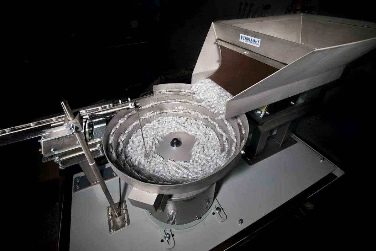 Podajnik wibracyjny pokryty specjalistyczną powłoką zabezpieczającą przed rysowaniem komponentów.