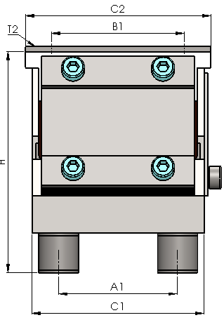| Otwory montażowe T2 (mocowanie szyny) | mm | 4 x M4 | 4 x M5 | 4 x M8 |